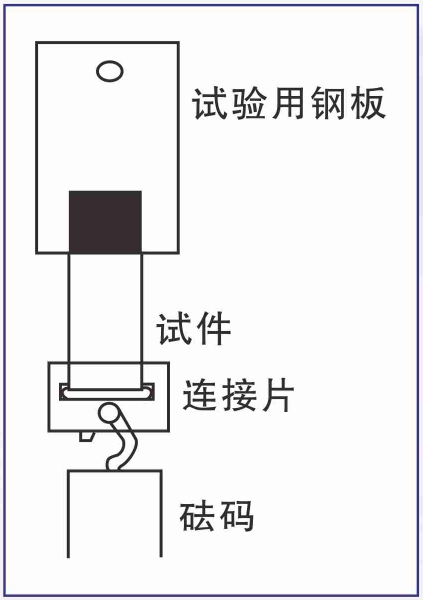固定:將測試板掛在機器的掛鉤上,下面用連接片連接并掛上砝碼