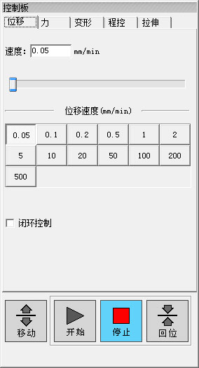 (5)支持多種控制方式,包括開環(huán)等速位移及等速力、等速應(yīng)力等多種閉環(huán)控制方式;并在高級(jí)操作者調(diào)試閉環(huán)參數(shù)過程中給出標(biāo)準(zhǔn)參考曲線,從而使用戶實(shí)際觀察到各參數(shù)對(duì)閉環(huán)效果產(chǎn)生的影響。