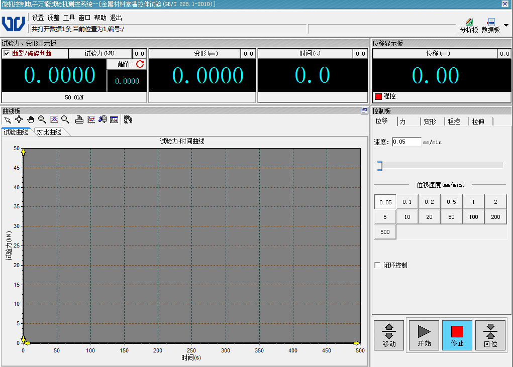 (5)支持多種控制方式,包括開環(huán)等速位移及等速力、等速應(yīng)力等多種閉環(huán)控制方式;并在高級操作者調(diào)試閉環(huán)參數(shù)過程中給出標(biāo)準(zhǔn)參考曲線,從而使用戶實際觀察到各參數(shù)對閉環(huán)效果產(chǎn)生的影響。