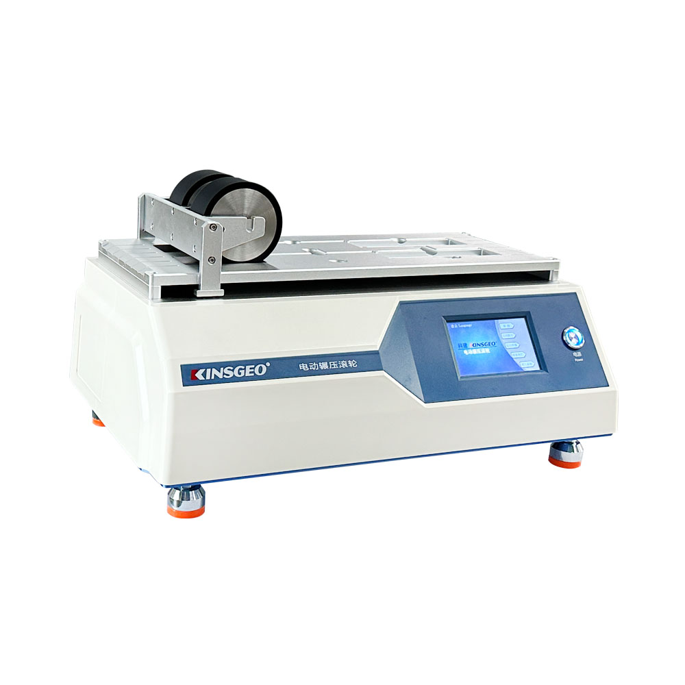 電動碾壓滾輪用于膠粘帶剝離強度、持粘性等試驗用試件的制備。以固定的壓力及速度,將膠粘帶試樣規(guī)范平整,均勻的粘著于標(biāo)準(zhǔn)的試驗基材上。