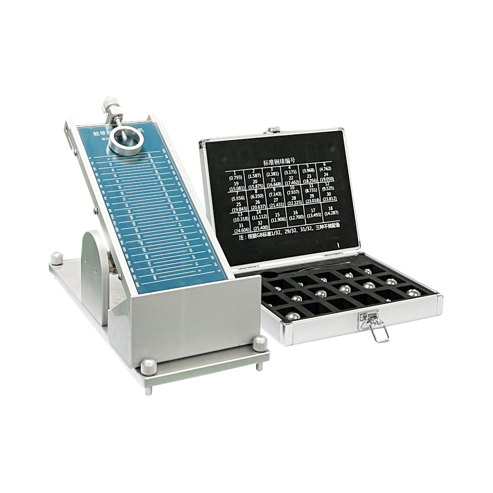4. 以潔凈之鉗子將鋼球置于球座內(nèi)(鋼球球心和0 刻度重合),從32號(hào)鋼球起依序試驗(yàn)。